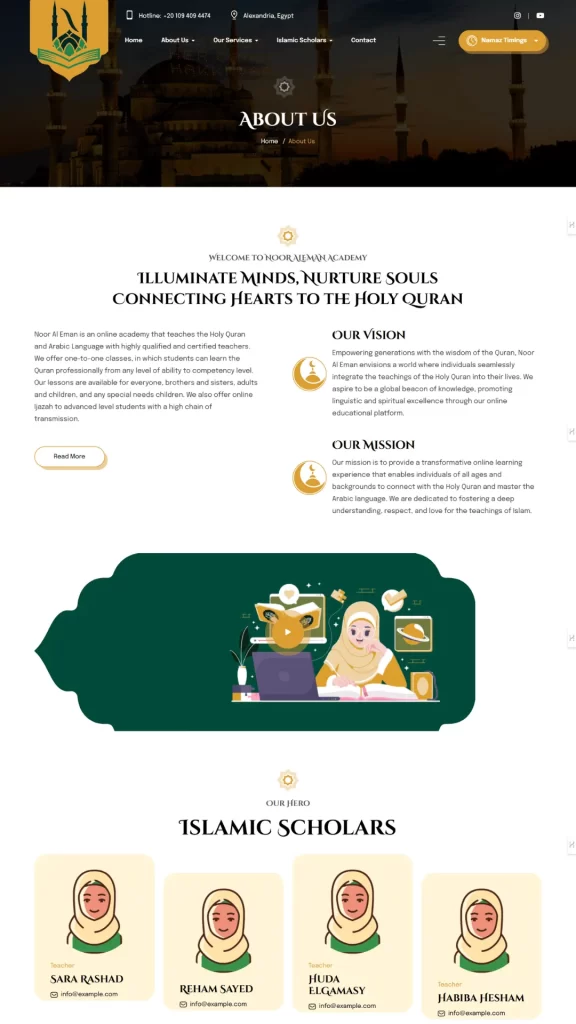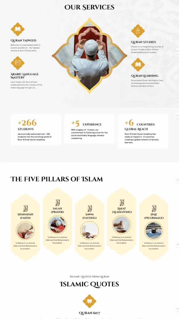 The development of the Noor Al Iman Academy website has provided the institution with a professional, user-friendly platform that effectively communicates its mission and services to a global audience. Through the use of WordPress and a focus on user experience, we created a website that serves as a valuable resource for students and parents seeking quality Quranic education. This project showcases my ability to deliver high-quality web development solutions that meet the unique needs of educational institutions and enhance their online presence.